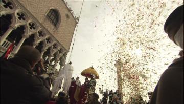 Pero tenemos que llegar al Carnaval de Venecia para encontrarnos con el verdadero confeti. Los festejantes se divertían arrojándose mutuamente puñados de confites, pequeños dulces hechos de almendras y azúcar (confetti, en italiano) en los salones de la nobleza. En las fiestas populares, en las que tarde o temprano siempre se acababa por imitar los usos de la clase dominante, los confites también se pusieron de moda, pero pronto fueron substituidos por el más económico papel picado, que conservó el nombre de confetti. Al llegar al castellano, perdió una t, con el fin de adaptarse a nuestra grafía. La palabra italiana para confeti de papel es coriandoli.